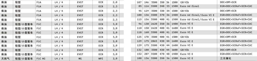 2021年時,F(xiàn)1系列已獲得歐六E階段/Euro 6dFinal 認(rèn)證。通過采用外置冷卻廢棄再循環(huán)系統(tǒng)(EGR)、底置SCR及SCROF的組合,其在各類駕駛條件下均可達(dá)到所需的后處理效率。